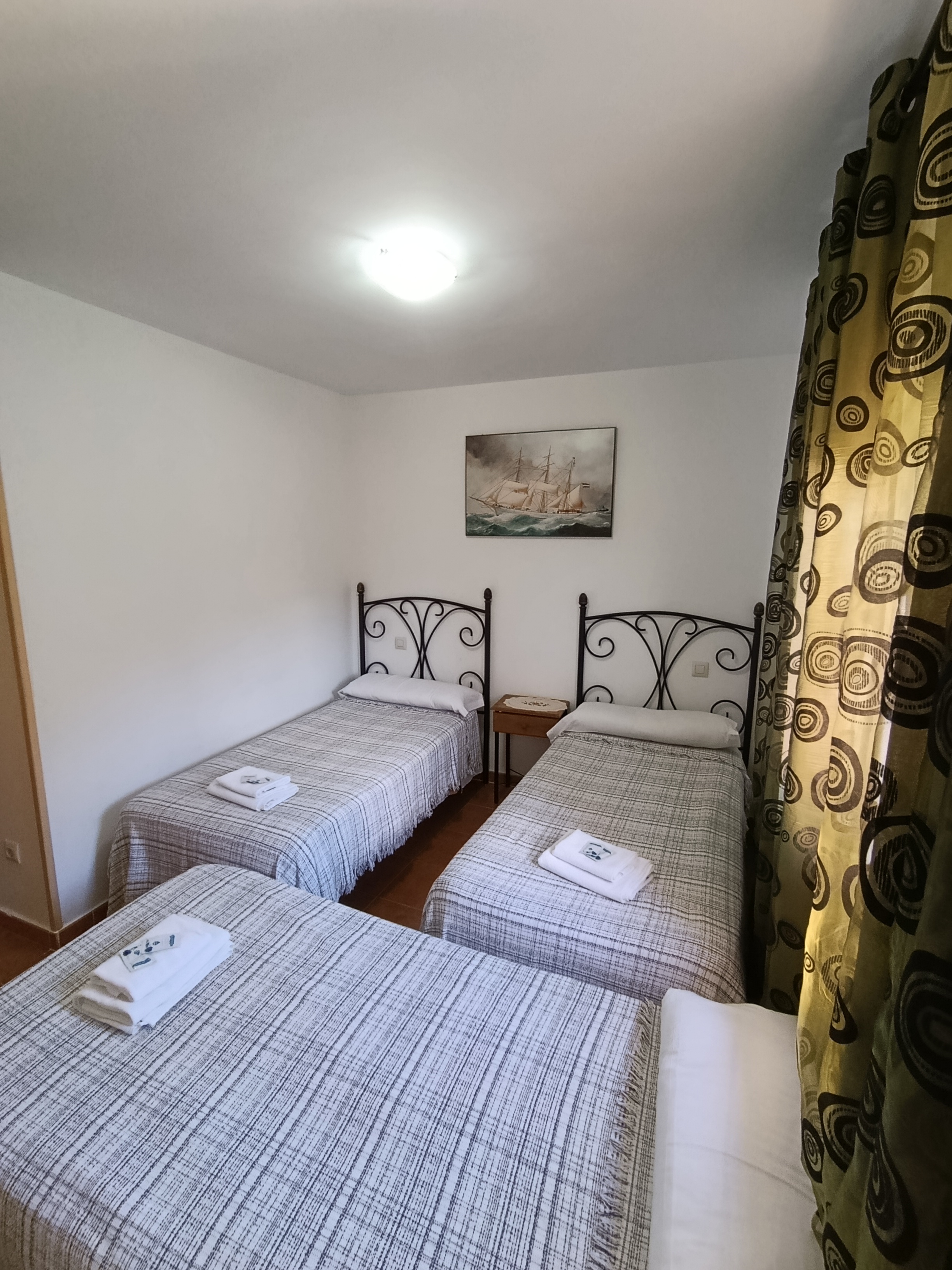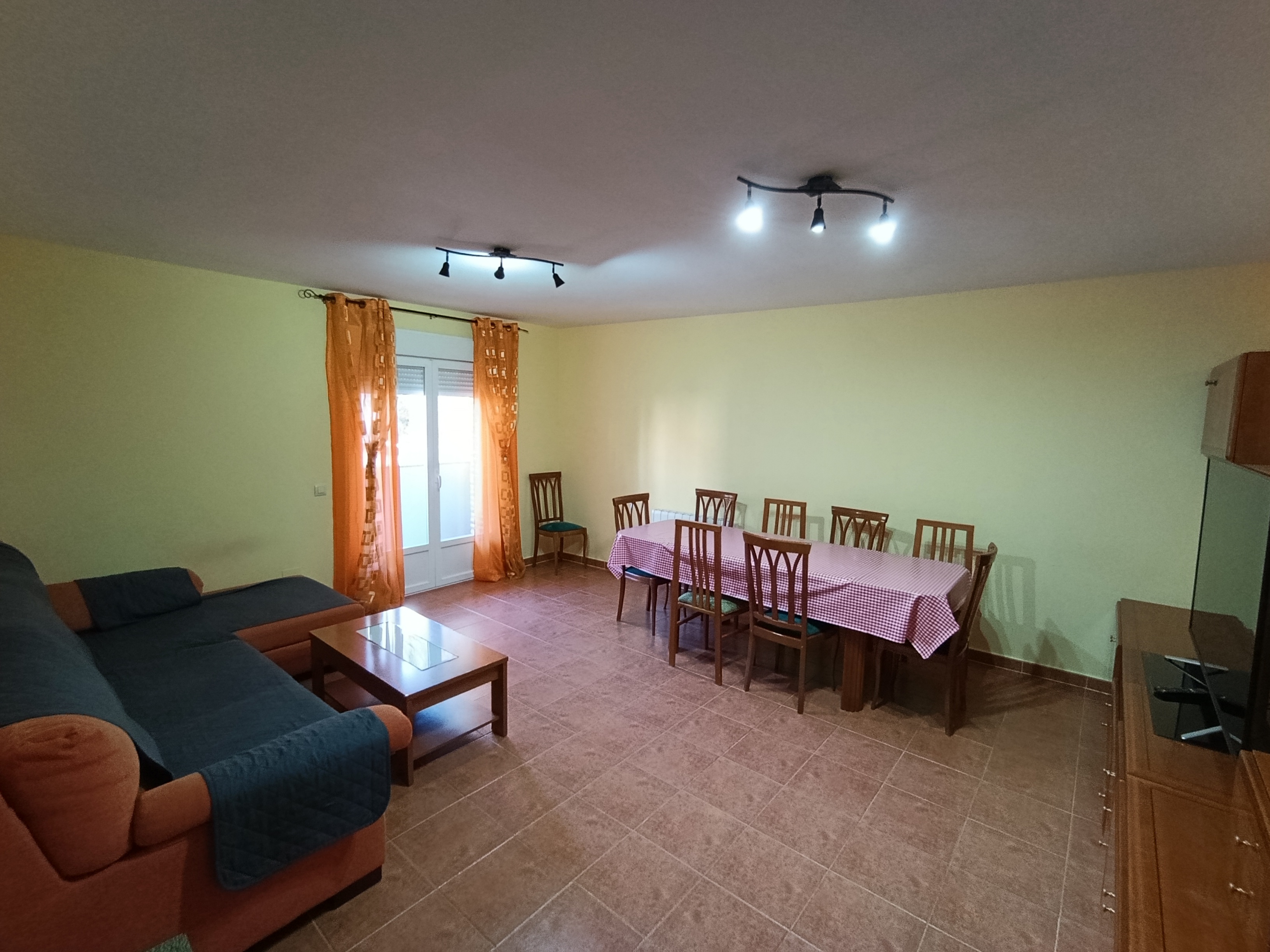 Alojamiento de alquiler íntegro con hospedaje de 8 a 9 personas. Cuenta con 4 dormitorios (dos con cama de matrimonio y dos con camas individuales; disponibilidad de cuna bajo petición), tres cuartos de baño, gran mesa de comedor junto al salón con sofás y televisión, y cocina totalmente equipada con electrodomésticos y menaje.